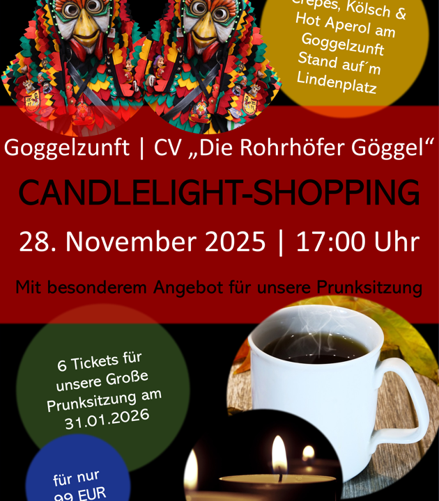 Am 28. November 2025 ab 17:00 Uhr startet das Candlelight-Shopping. Glühwein, Crêpes, Kölsch & Hot Aperol am Goggelzunft Stand aufm Lindenplatz. Dort können 6 Tickets für […]