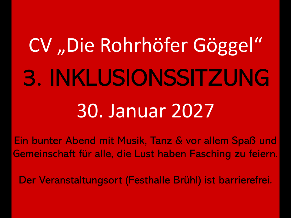 Am 30.01.2027 findet unser 3. Inklusionssitzung in der Festhalle Brühl statt