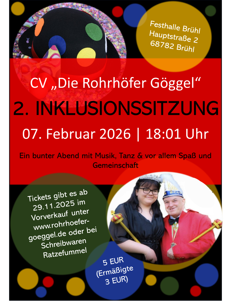 Seniorensitzung 20261. Dezember 2025Rosenmontagsparty 20261. Dezember 2025 Am 07.02.2026 findet unsere Inklusionssitzung in der Festhalle Brühl statt. Teilen Ähnliche Beiträge1. Dezember 2025Kinderfasching 2026Weiterlesen1. Dezember 2025Rosenmontagsparty 2026Weiterlesen1. Dezember 2025Seniorensitzung 2026Weiterlesen